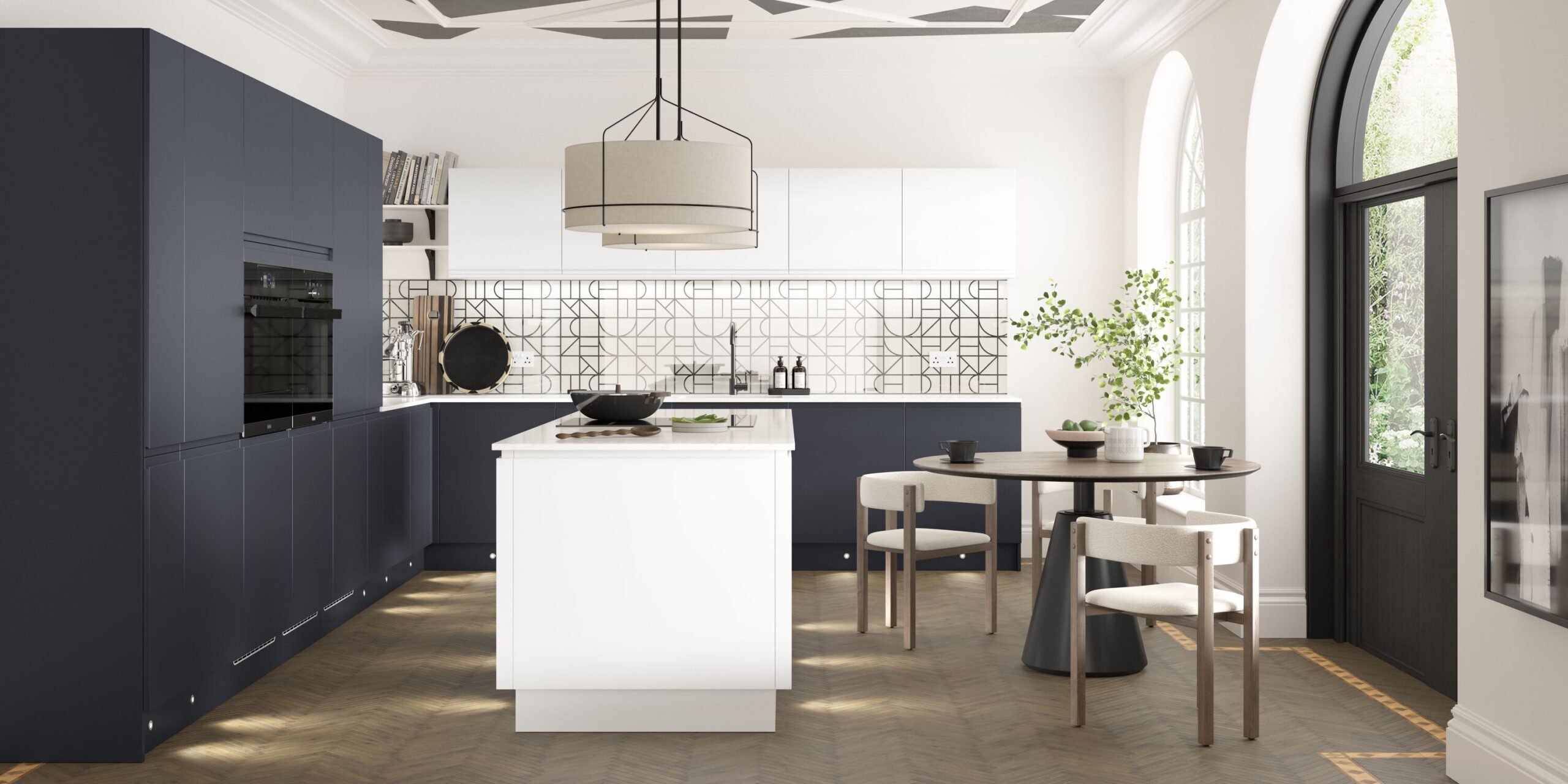 Indigo & White shownLooking for a sleek, modern kitchen then check out the Brooklyn range! With its handle-less design, clean lines and three stunning matt finishes it is perfect for any busy lifestyle. Time to upgrade your kitchen!