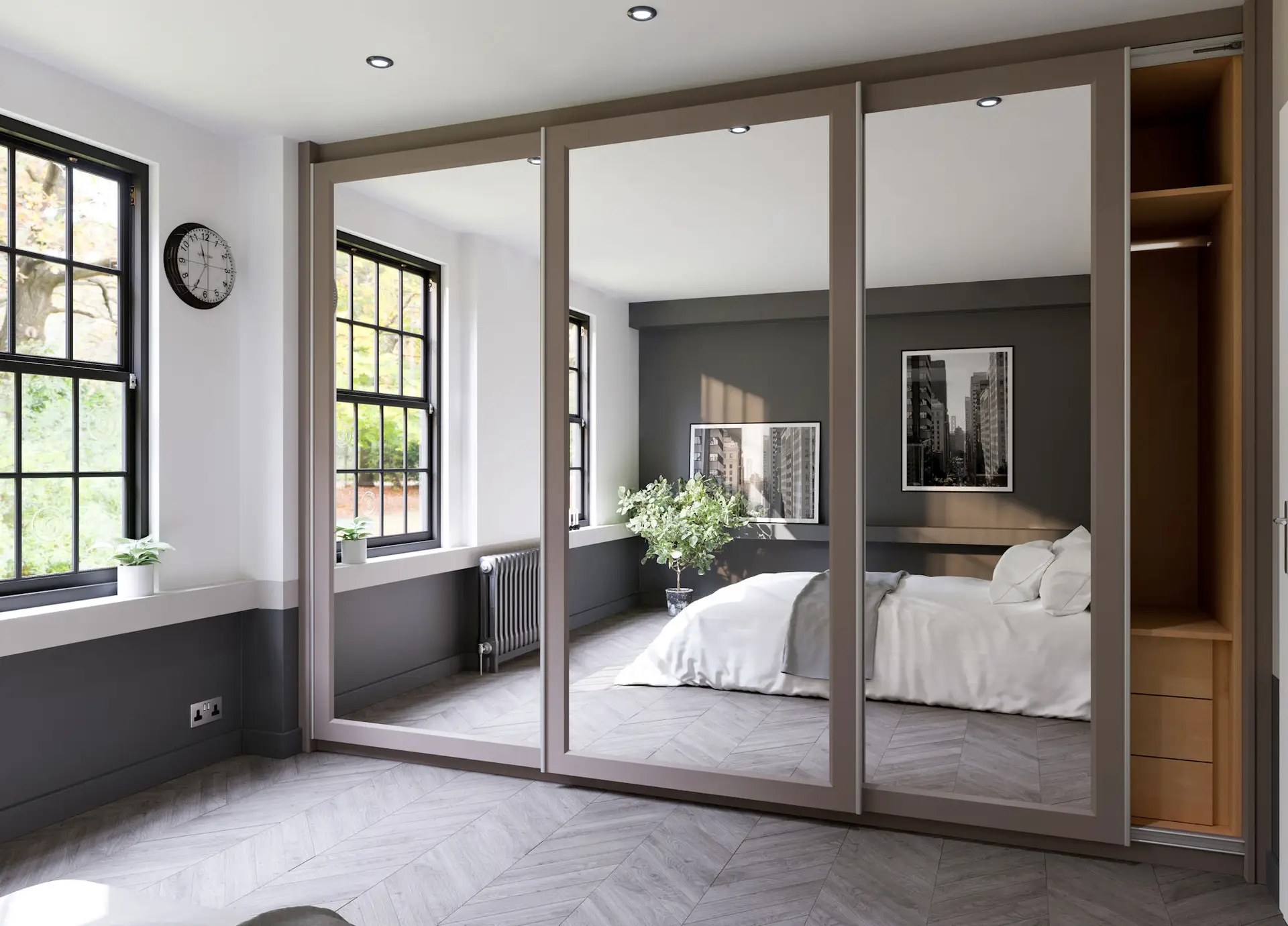 Mirrored Sliding Robes - Stone Grey