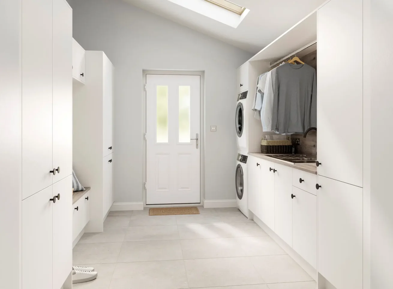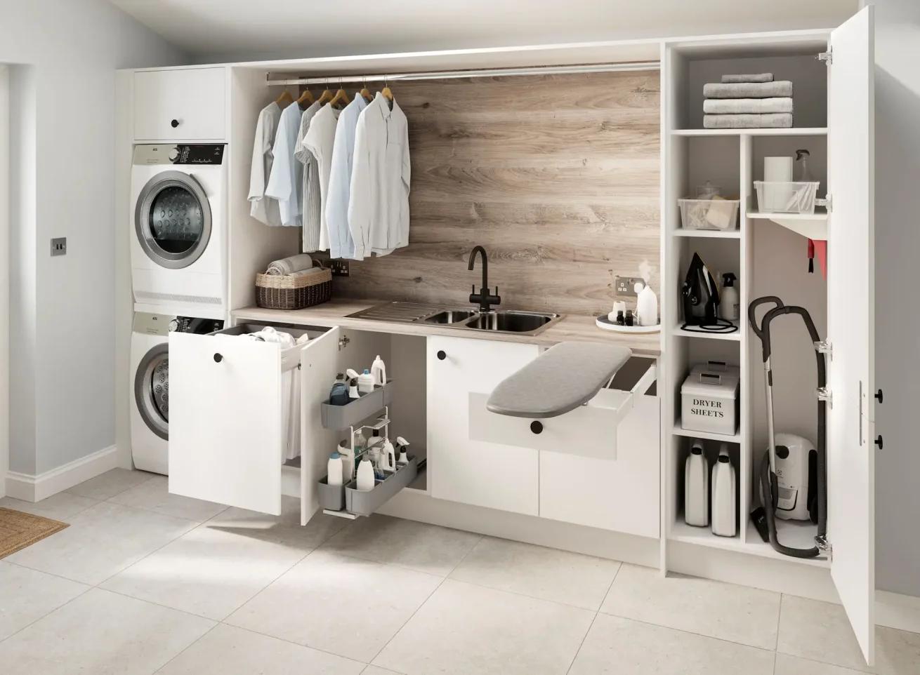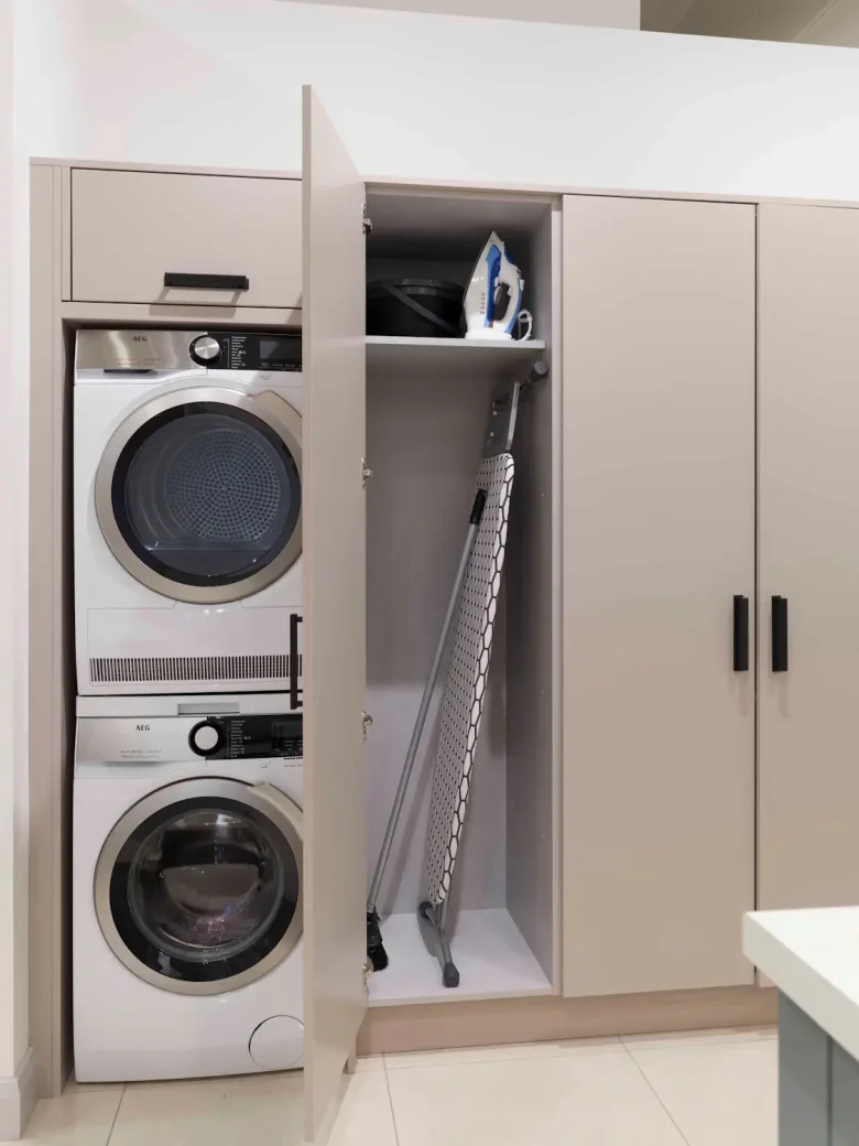 Maximise your laundry space by stacking your washer and drier making hectic laundry days a breeze. Even the ironing board can be hidden away. Say goodbye to laundry chaos and hello to a tidier home!