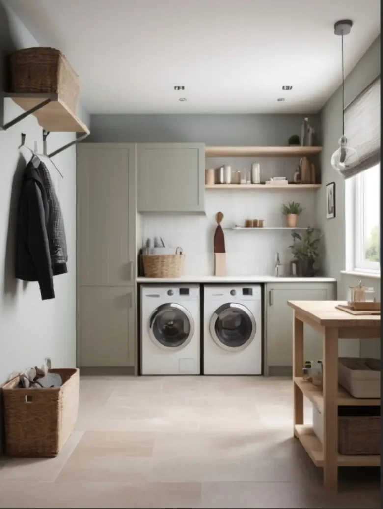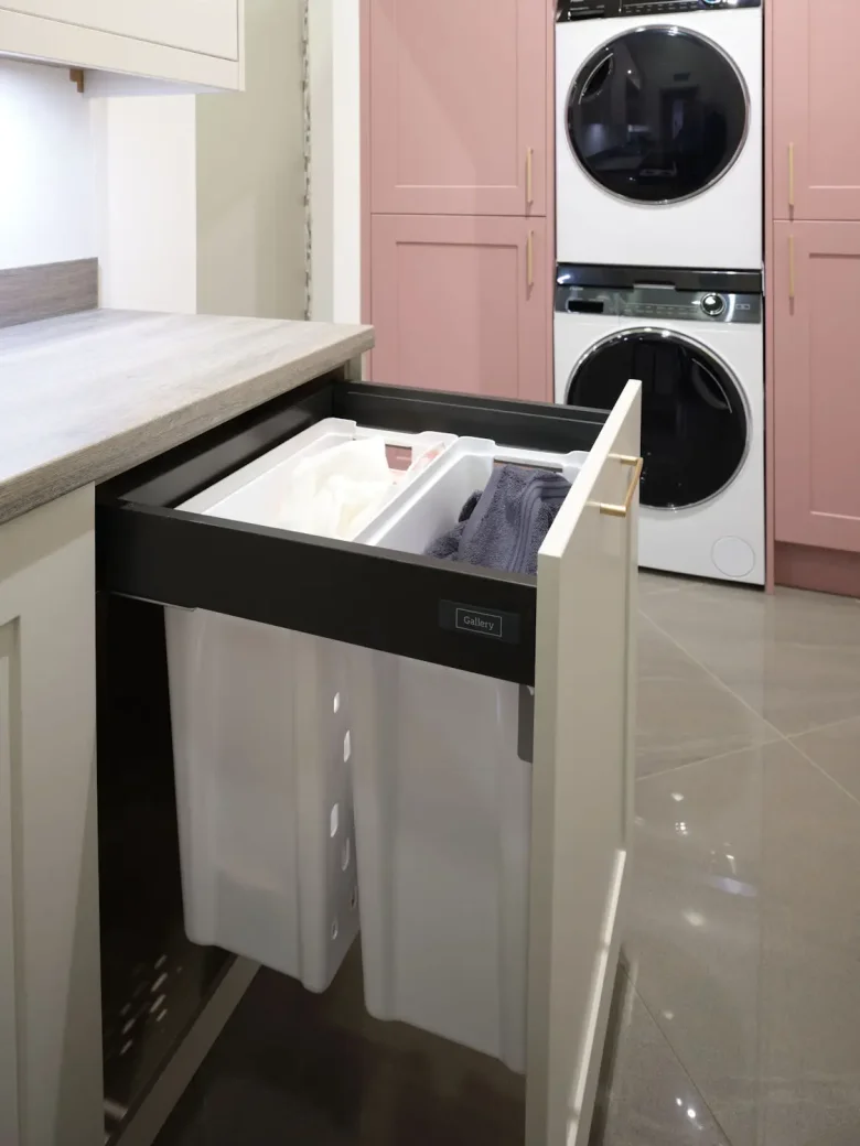 Laundry days are no longer such a chore with stylish storage hiding the washing pile and the ironing board.